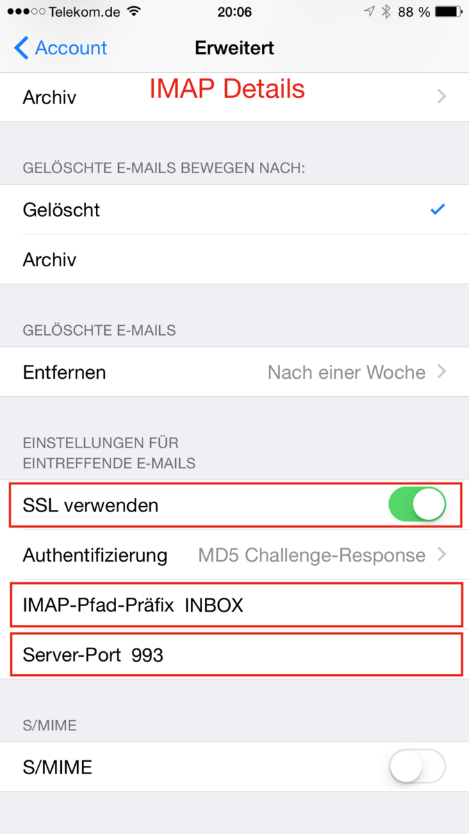 IMAP Einstellungen